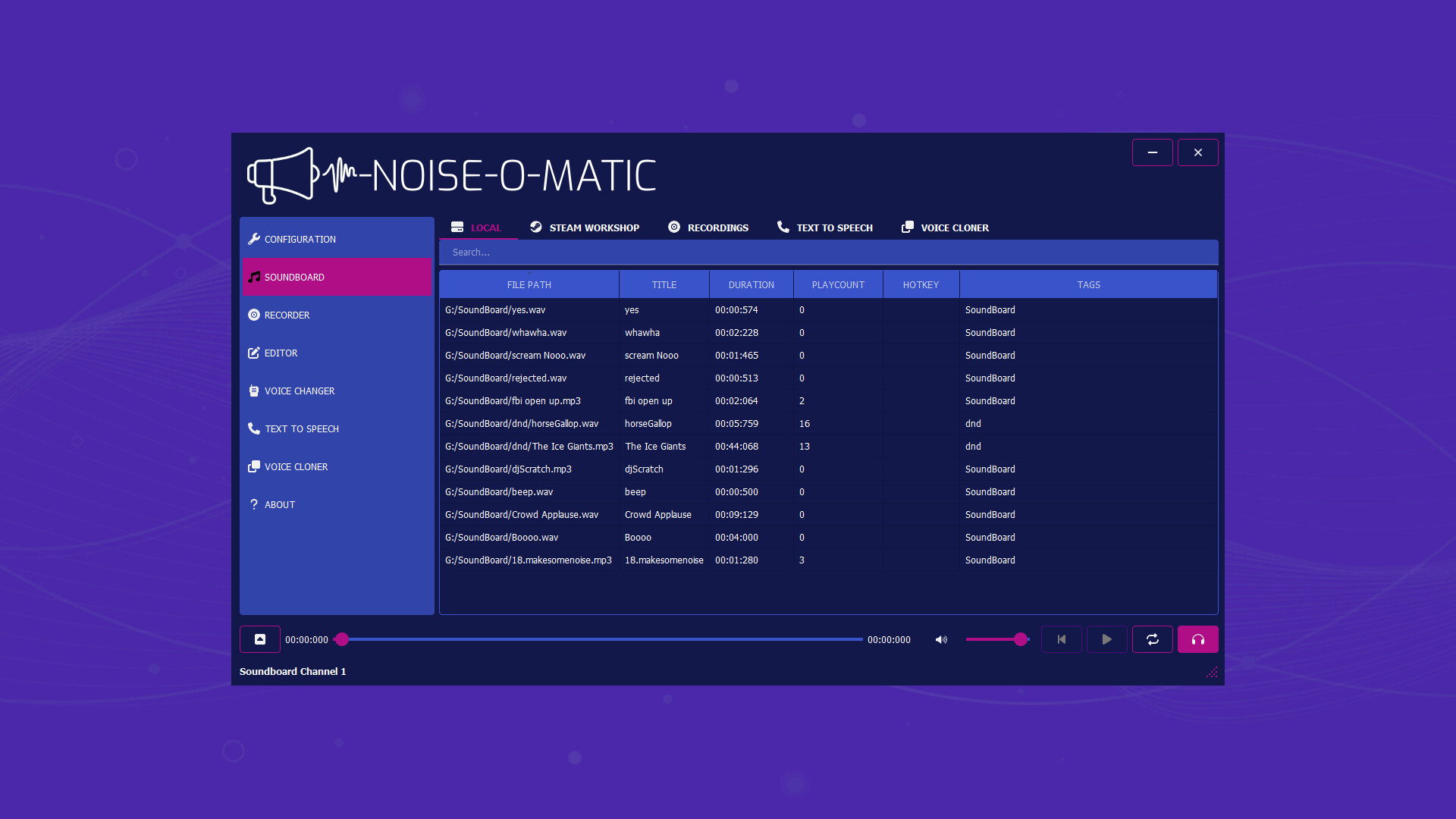 High-quality soundboard software for voice chats: play sounds, record & alter your voice in real-time. Add music and sounds to your microphone for others to hear. Text-to-speech feature included. Elevate your audio experience effortlessly in any application or game! Lets make some noise!