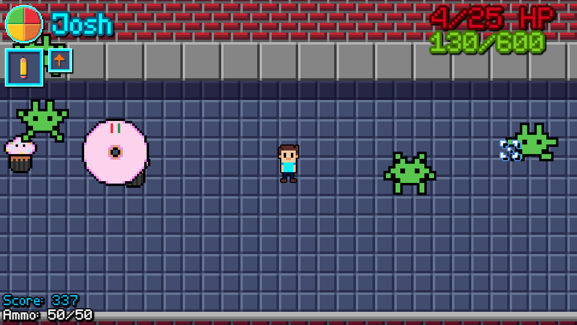 Introducing Hollybound: a game of underqualified heroes! A radioactive invasion is taking over Wayfield, and it´s up to you to stop it! In this action-packed top-down shooter, you´ll face inconvenient traffic, a crowded shopping mall, and even an Italian restaurant! ...It´s cooler than it sounds.