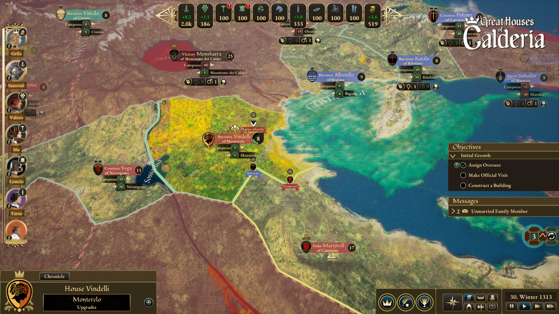 Great Houses of Calderia is a Feudal Grand Strategy game focusing on family dynamics & stories. Use your family strengths to compete against rivals to rise in the ranks of Calderia - produce, trade, scheme, bribe, and battle to build your legacy of power!