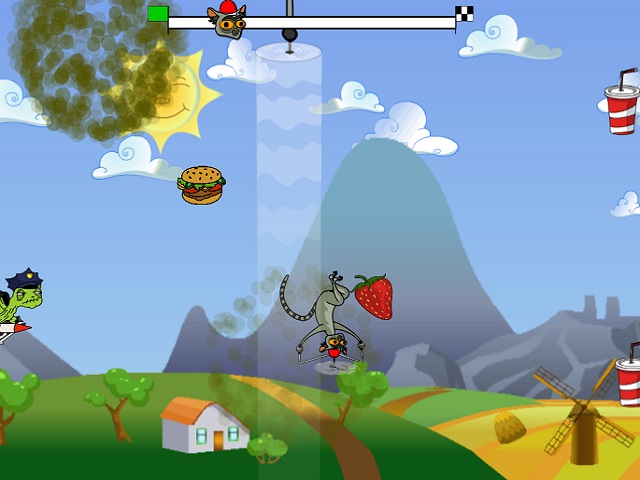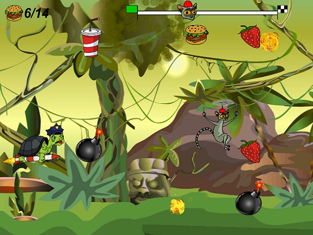 Lemurzin - это уникальная сумасшедшая аркада. Играй за безбашенного Лемурзина и собирай гамбургеры, колу, картошку и мороженное. Уворачивайся от опасных препятствий и выстрелов. И помни, что тебя постоянно будет преследовать черепаха, летящая на ракете со смертоносным оружием. Это крышесносящая игра от создателей не менее убойного мультфильма Kut Stupid.