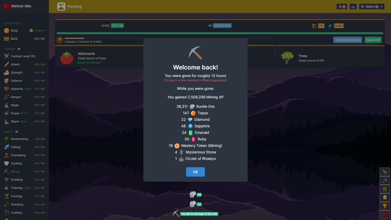 Melvor Idle - это многофункциональная игра с привычным интерфейсом. В игре более 20 уникальных навыков, и вам всегда будет чем заняться.