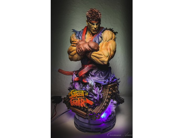 Бюст Рю в масштабе 1/4 протестирован в формате STL и готов к 3D-печати.