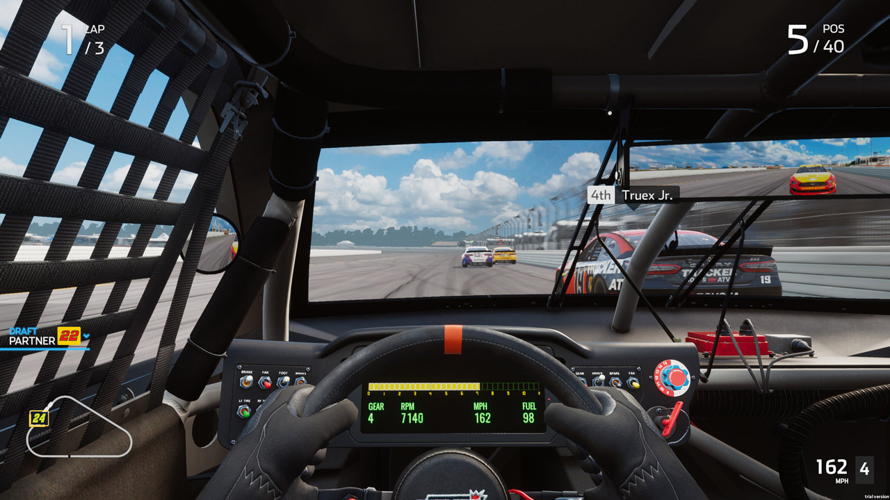 В нем представлены все официальные команды, пилоты и автомобили трех национальных серий NASCAR, а также Xtreme Dirt Tour, гонки на 39 аутентичных трассах. Захватывающая карьера дополняется быстрой гонкой, новым режимом тестовой сессии и мультиплеером, как онлайн, так и на разделенном экране.