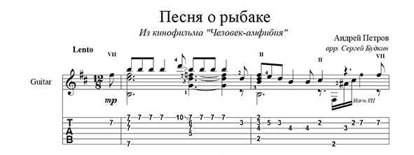 Аранжировка для гитары песни Андрея Петрова из кинофильма "Человек-амфибия".