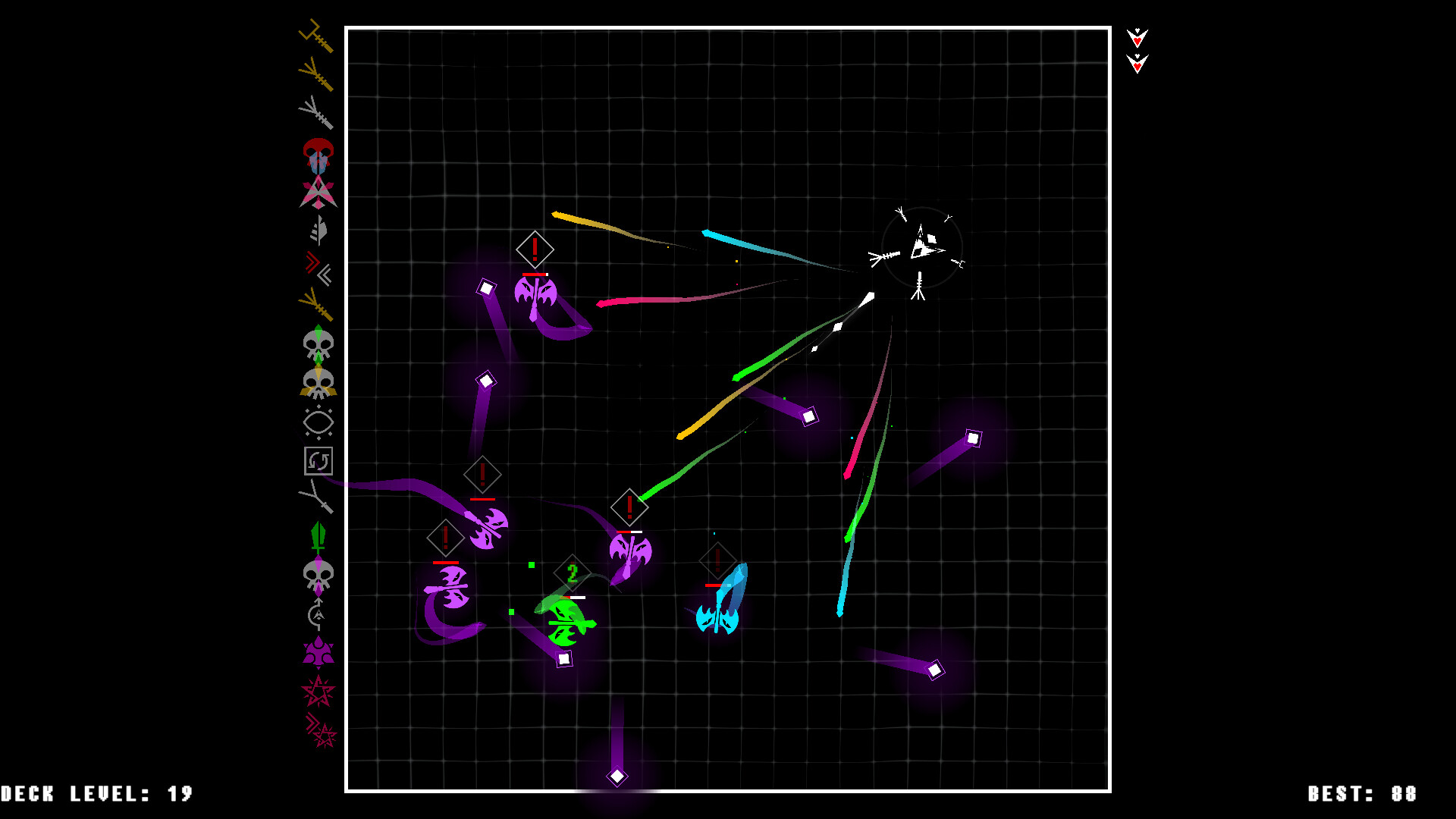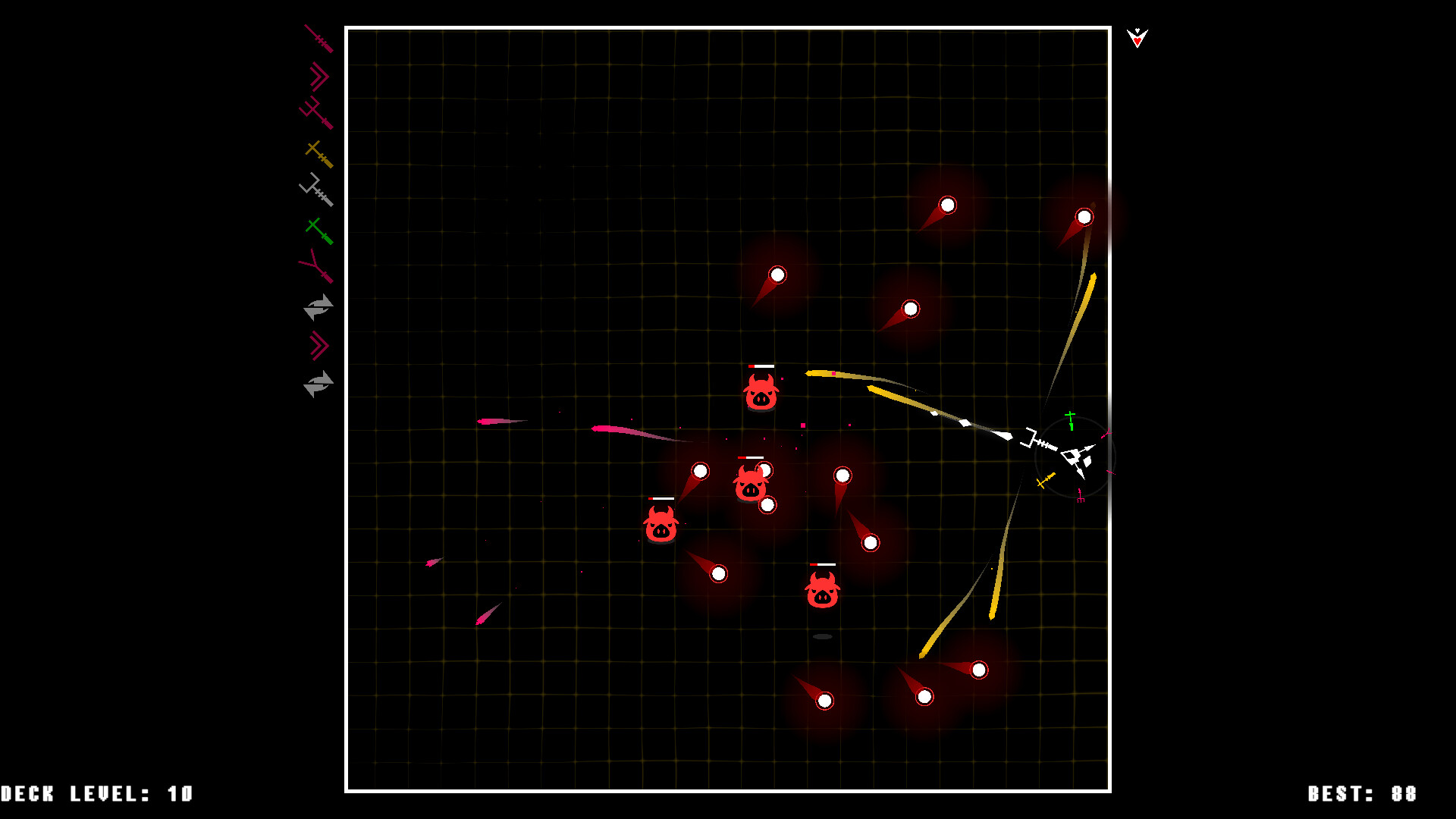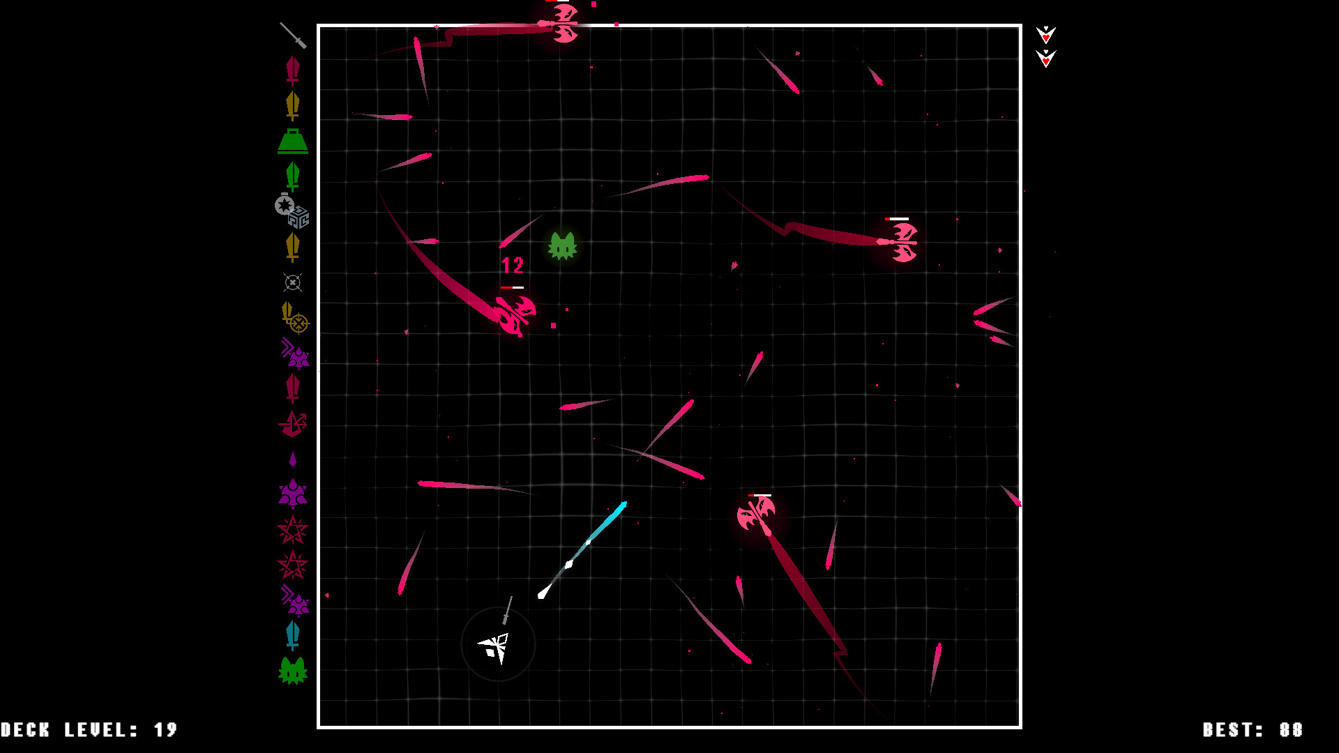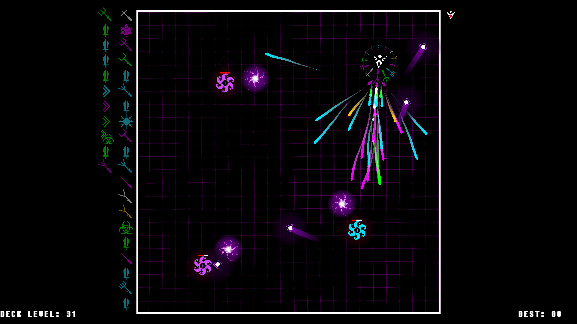 GunDeck[100] is a lightning-fast twin-stick shooter where you’ll build your arsenal from randomly-dealt cards. Weapons fire in a rainbow of elements with unique effects. Dart and dodge to survive the fireworks unleashed against you, and retaliate with your own display! Can YOU survive to wave 100?