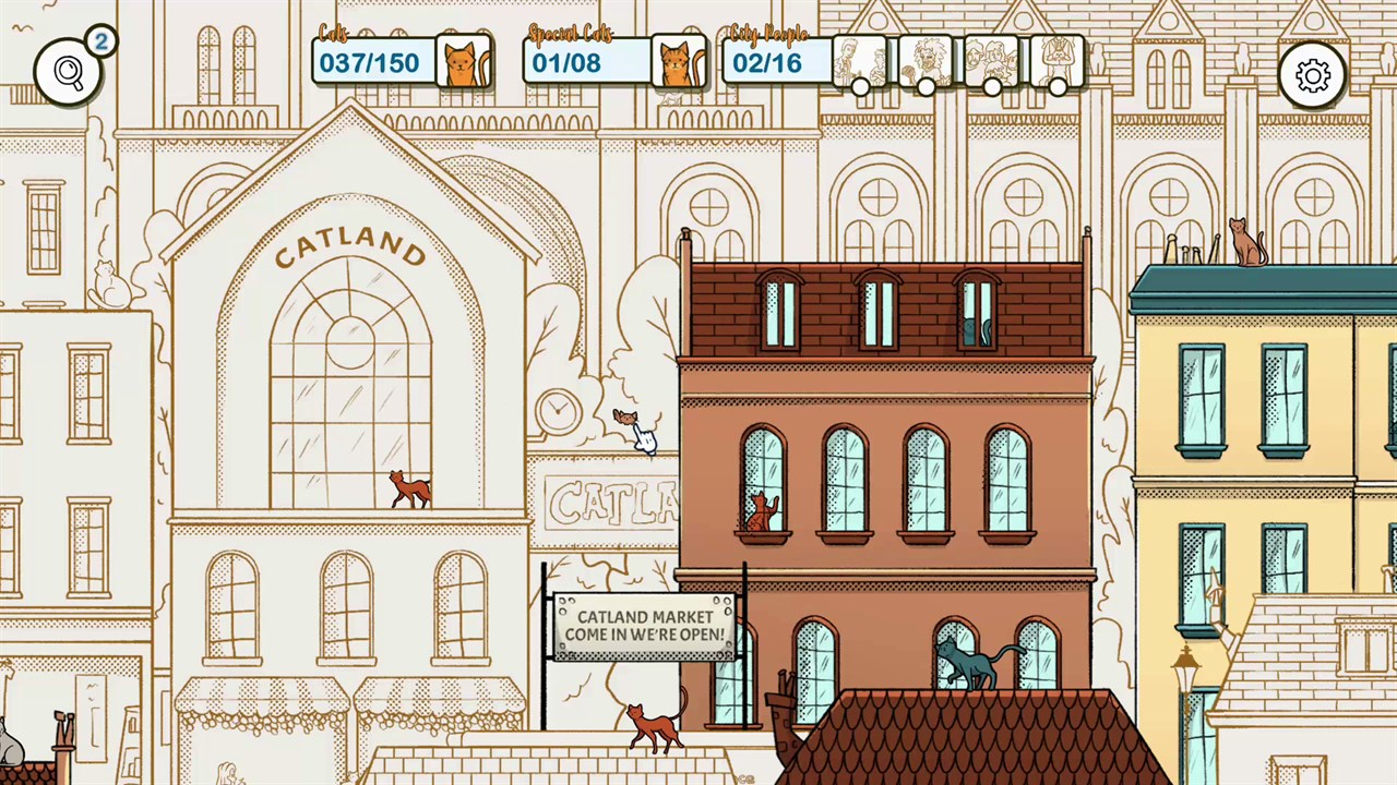 Найдите 50 котят, спрятанных на особых уровнях: книжный магазин, паб, станция метро, музыкальная студия и дворец.