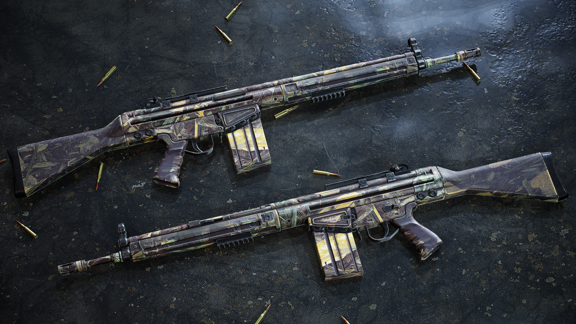 Подкрадитесь к своей жертве с вариантами раскраски оружия Hunter. Эти раскраски можно применить к шести видам оружия.