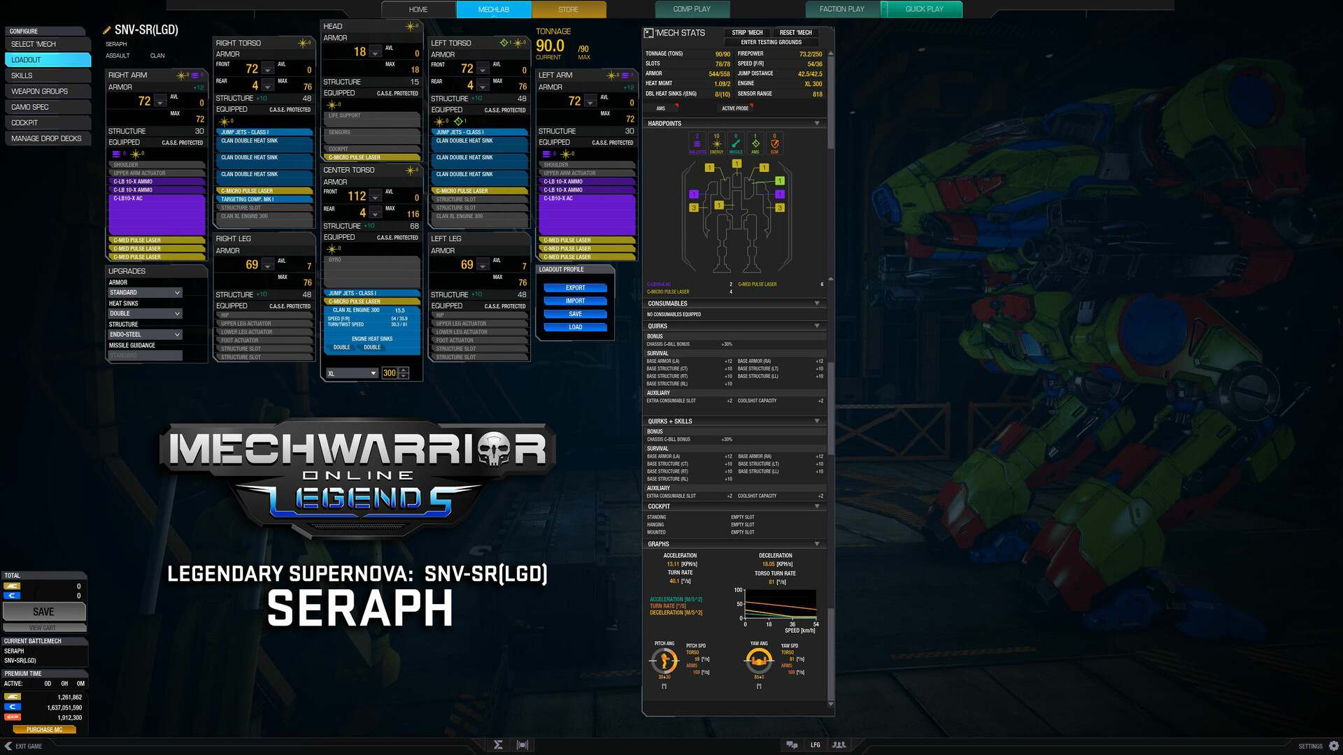 Presenting the Supernova "Seraph" Legendary Mech with unique hard points, quirks, and a 30% C-Bill boost! Playing the Legendary Mech will unlock rewards from the Mini Battle pass which includes unique in-game customization items, in-game currency, boosters, and consumables.