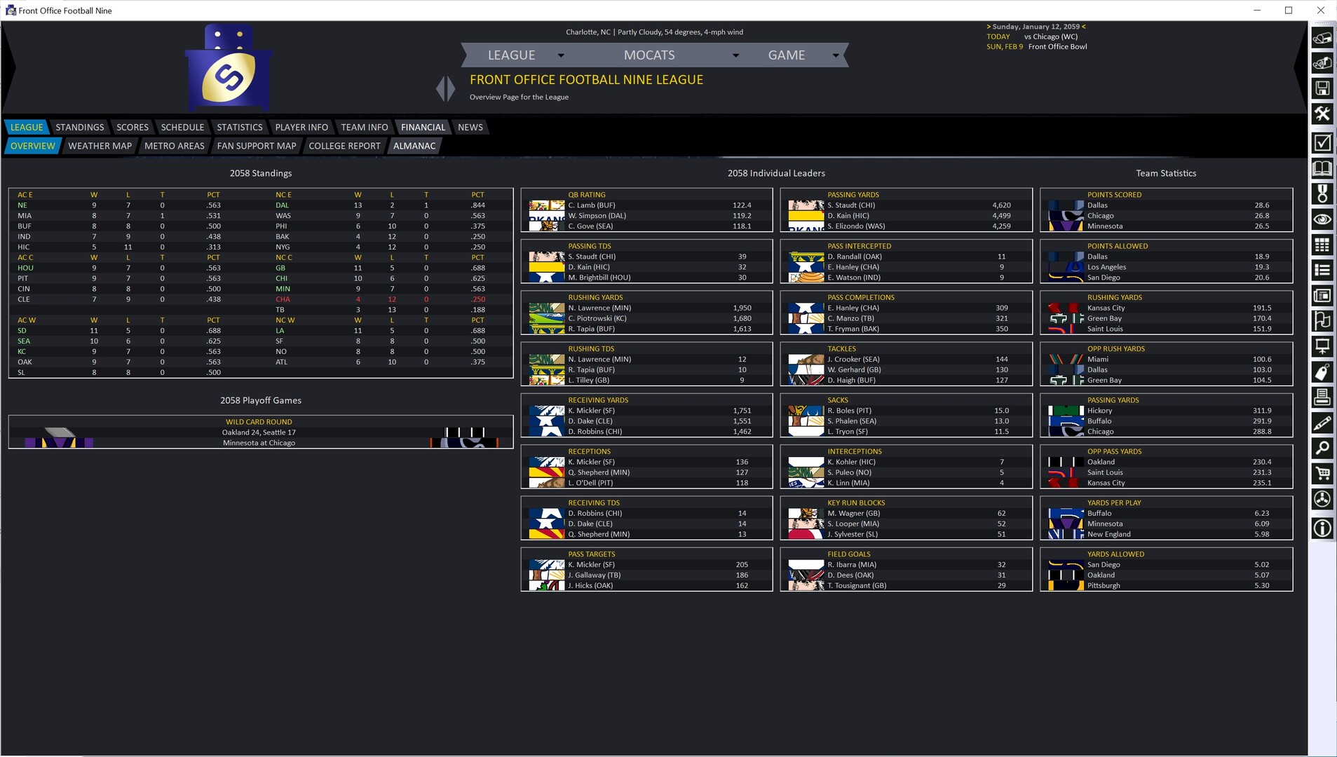 Put yourself in the Front Office with Front Office Football, the professional football simulation from Solecismic Software. Manage your roster through trading, free agency and the amateur draft. Create game plans, organize depth charts and watch your franchise thrive for decades.