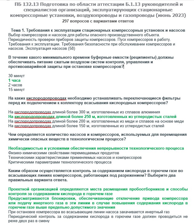 Вопросы с ответами к курсам ОКС-Олимп Б.1.13 ПБ 132.13 (июнь 2023) Подготовка руководителей и специалистов организаций, эксплуатирующих стационарные компрессорные установки, воздухопроводы и газопроводы
