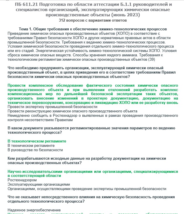 Вопросы с ответами к курсам ОКС-Олимп Б.1.1 ПБ 611.21 (июнь 2023) Подготовка и аттестация руководителей и специалистов организаций, эксплуатирующих химически опасные производственные объекты