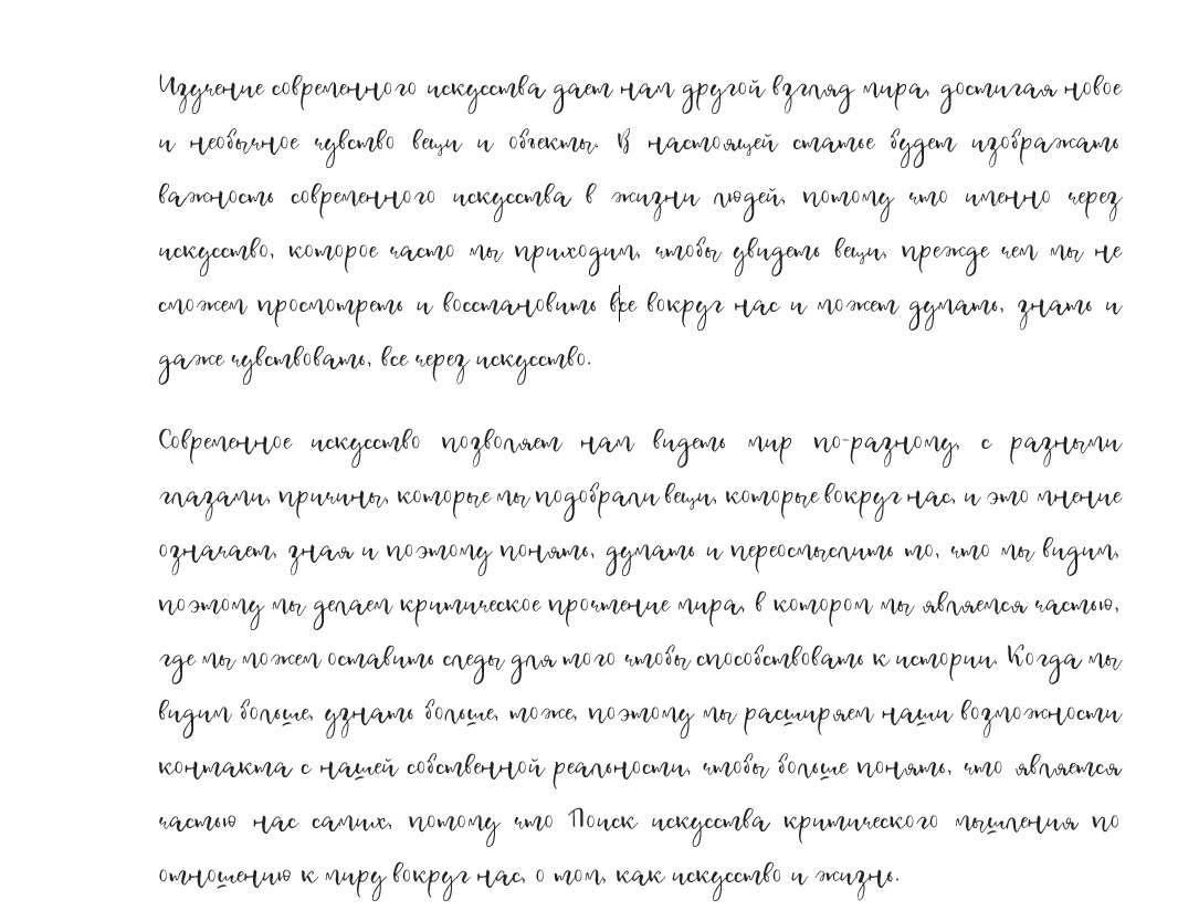 Данный шрифт позволяет быстро, красиво, и качественно восполнить конспекты (либо создать их с нуля) распечатав нужные материалы в обычной тетради. Как это делается смотрите на ютубе (есть инструкции), данный шрифт позволит избежать вам создание его с нуля за смешные деньги и уже через пару минут приступить к печати.