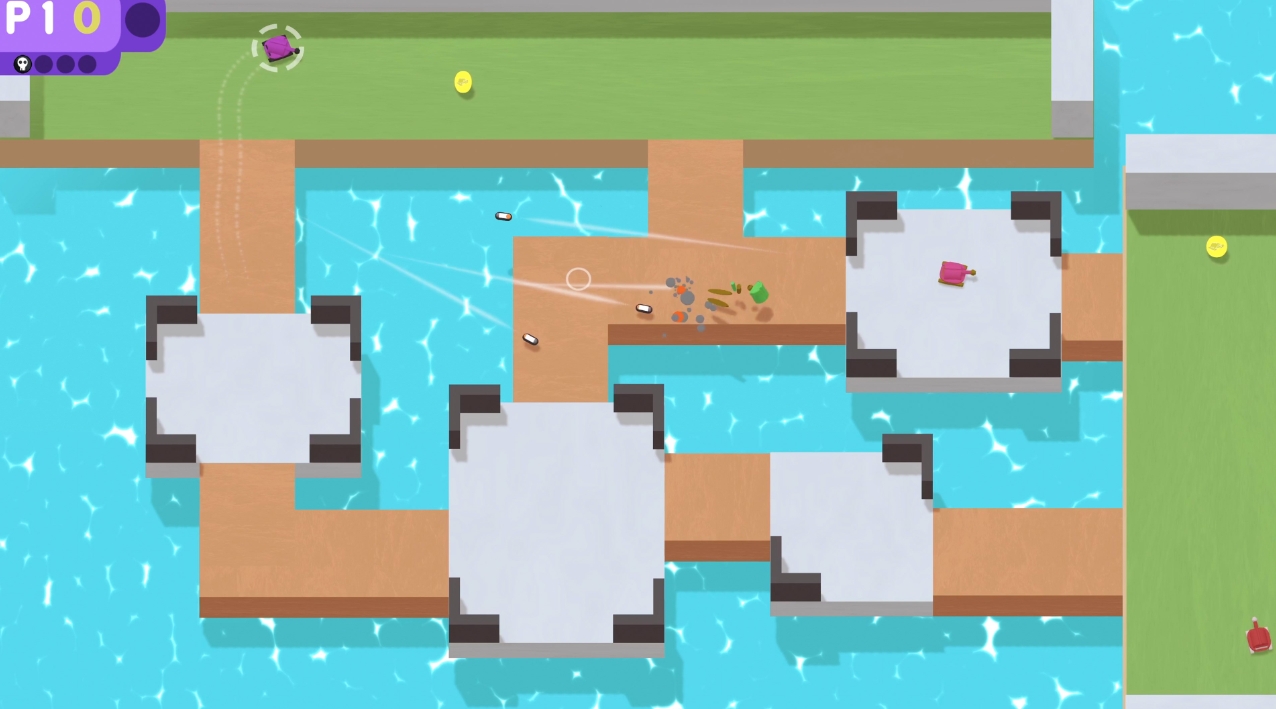 Tanks, But No Tanks — это обновленная версия классического танкового шутера с видом сверху. Этот многопользовательский сумасшедший дом будет держать вас в напряжении, пока вы балансируете между сбором монет на каждой карте и стрельбой по врагам. Улучшайте вооружение, броню и специальные способности вашего танка между раундами с помощью заработанных вами монет.