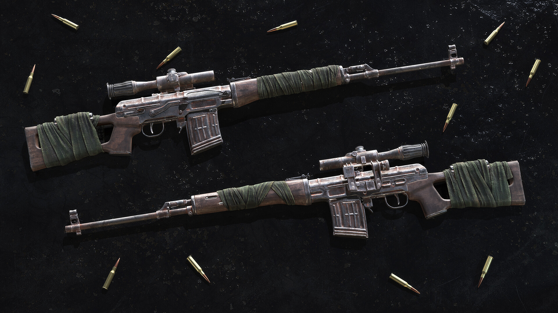 Почувствуйте себя матерым бойцом с набором окрасок «Бинты и ржавчина» для нарушителей закона. Эту окраску можно нанести на шесть видов оружия.
