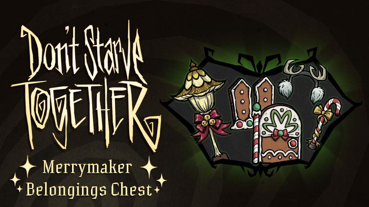 This Merrymaker Chest contains following skin items: Gingerbread Gate, Gingerbread Fence, Candy Cane, Fluffy Deermuffs, Festive Fungal Lamp.