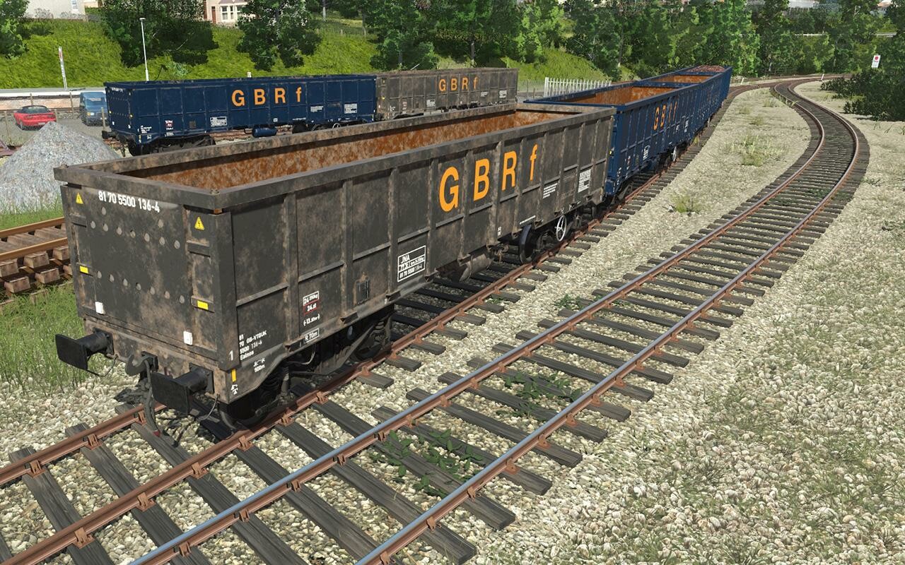 With the Ealnos open flat wagon you can move coal, ores, wood and more in large quantities. Up to 60 m3 can be transported. The wagon is used in Great Britain and comes in three different colour variations. Blue, light grey and dark grey from GBRf and VTG respectively.