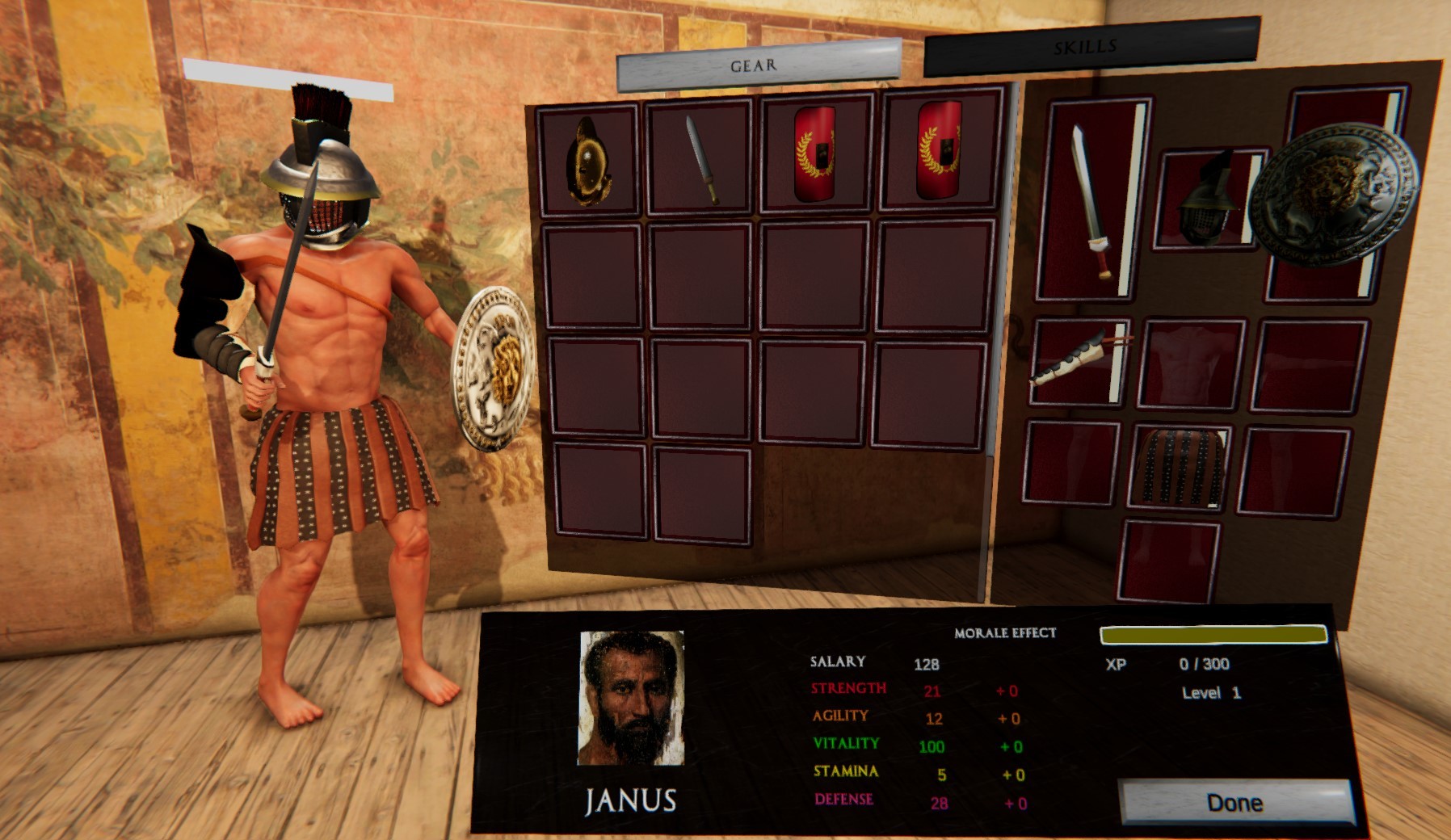Симулятор от первого лица, игра-менеджер Людуса в Древнем Риме. Управляйте гладиаторами, заботьтесь об их нуждах, выращивайте пищу, лечите и тренируйте их. Сражайтесь сами в арене. Побеждайте в турнирах и станьте самым известным владельцем Людуса!