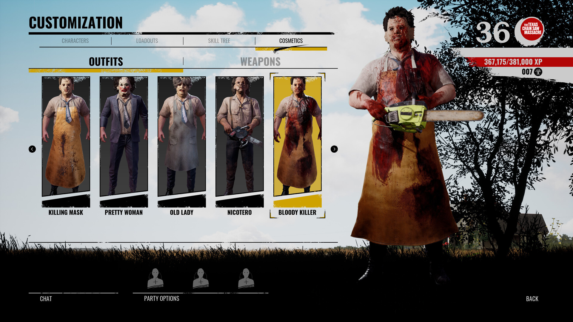 Show off your lust for brutality with these blood-soaked variants of the Family´s default outfit. Includes 1 bloody skin for Leatherface, The Cook, The Hitchhiker, Sissy, and Johnny.