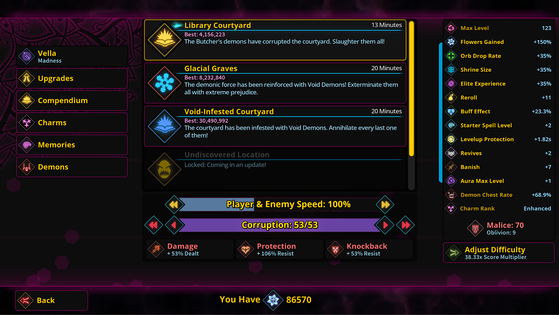Убивайте сотни демонов с помощью мощной магии и защитите Космическую Библиотеку! Выбирайте новые заклинания и улучшения каждое прохождение, создавая сверхсильных персонажей, а также присваивайте силы падших врагов, чтобы уничтожить орду демонов.