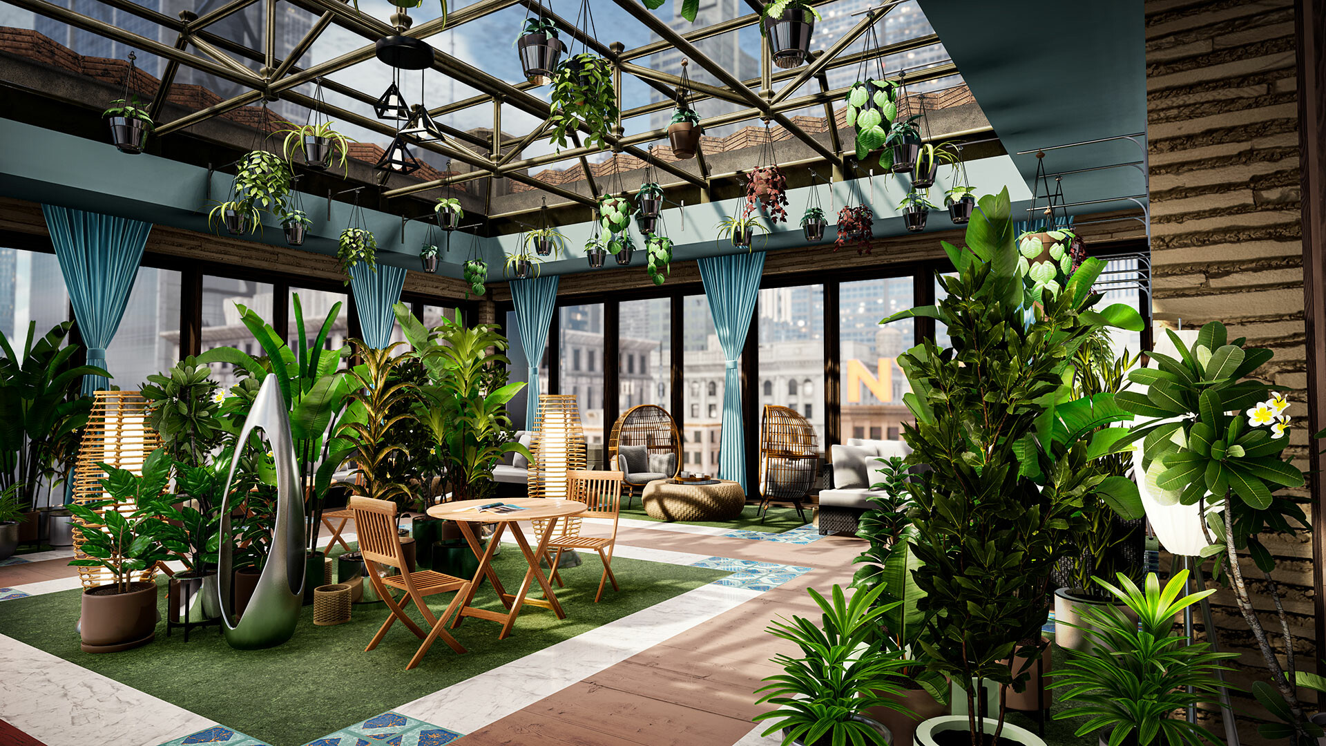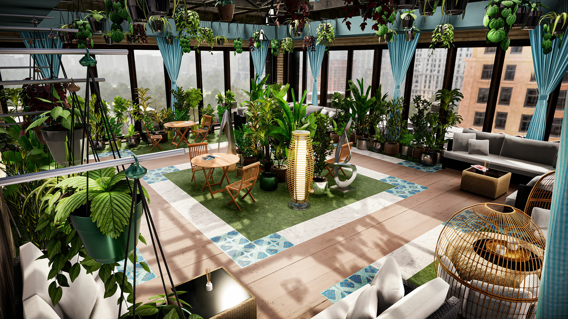 Укройся от будничной суеты в роскошном зеленом оазисе! Получи дополнение Indoor Garden Room & Furniture Set и преврати номер отеля в рай для любителей природы.