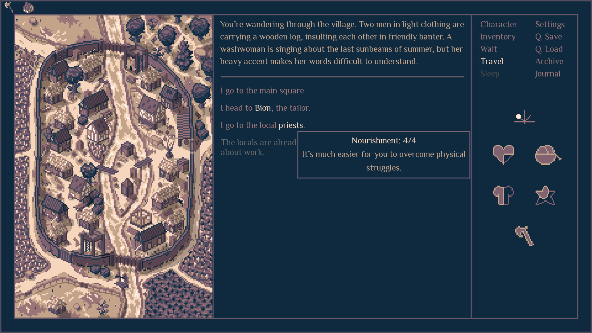 Roadwarden is an illustrated text-based RPG that uses isometric pixel art and combines mechanics borrowed from RPGs, Visual Novels, adventure games and interactive fiction.