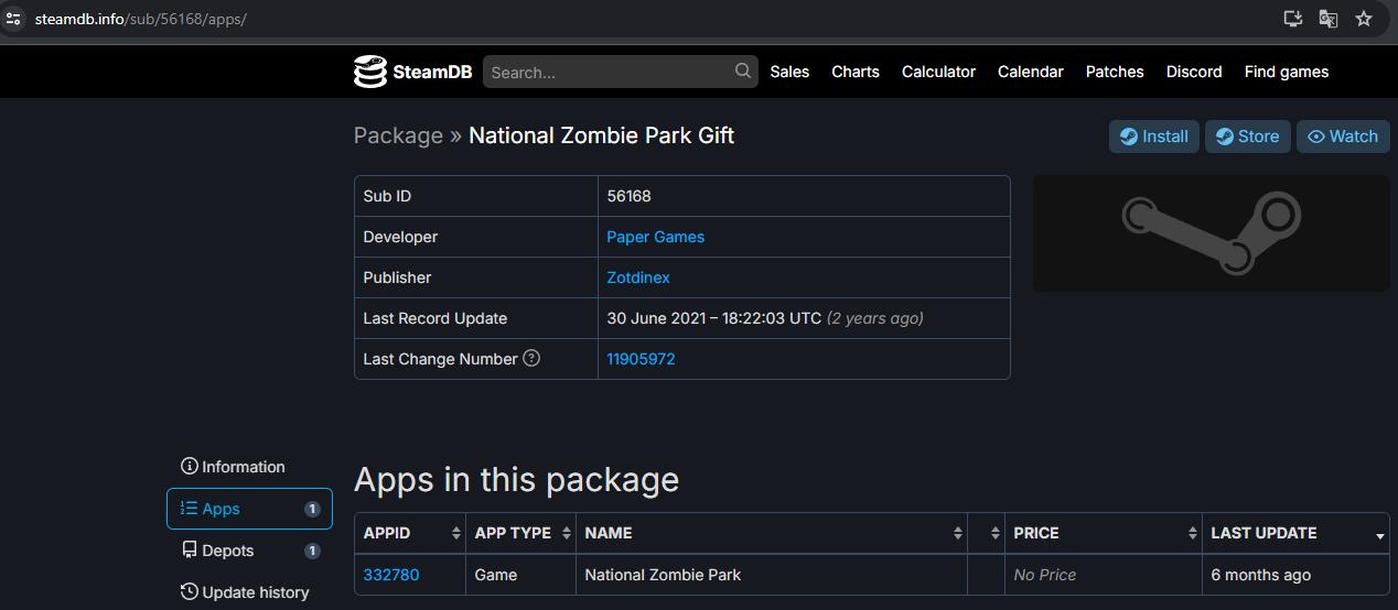 Посмотреть информацию в SteamDB об этом Gift: https://steamdb.info/sub/56168/apps/