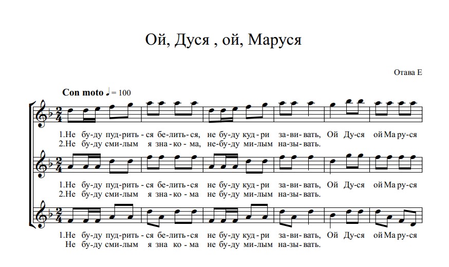 Отава Ё - Ой, Дуся, ой, Маруся (ноты для трио) со словами
