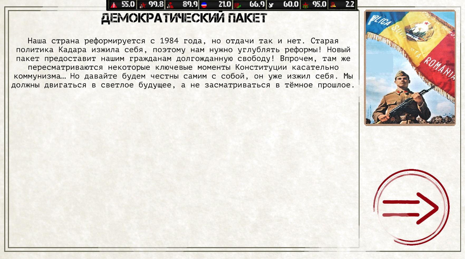 Мир меняется, но Албания - нет. Заветы Энвера Ходжи чтятся со всей сторогостью и ответственностью. Но как долго это будет длиться в мире конца Холодной войны? Албанский Горбачёв, исламский социализм или всё же Ходжа? Так много путей... И выбор - в ваших руках.
