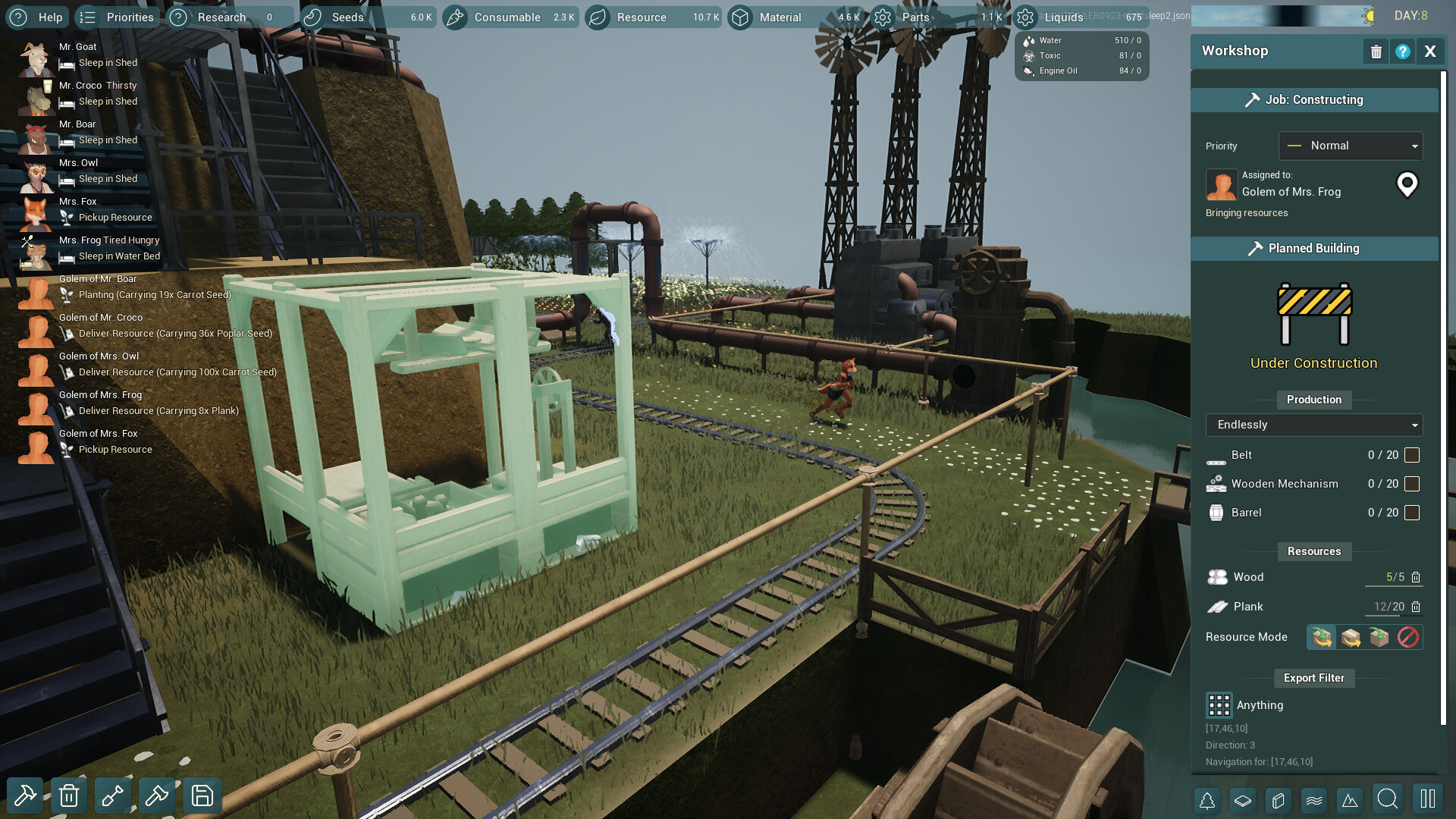 Mutants go to work! Gather resources, build a base, automate, and optimize in Revive & Prosper, a voxel base-building strategy game. Remodel terrain and cultivate food with 6 mutants and their golem sidekicks. Produce and deliver by belts and catapults. Can you revive and prosper?