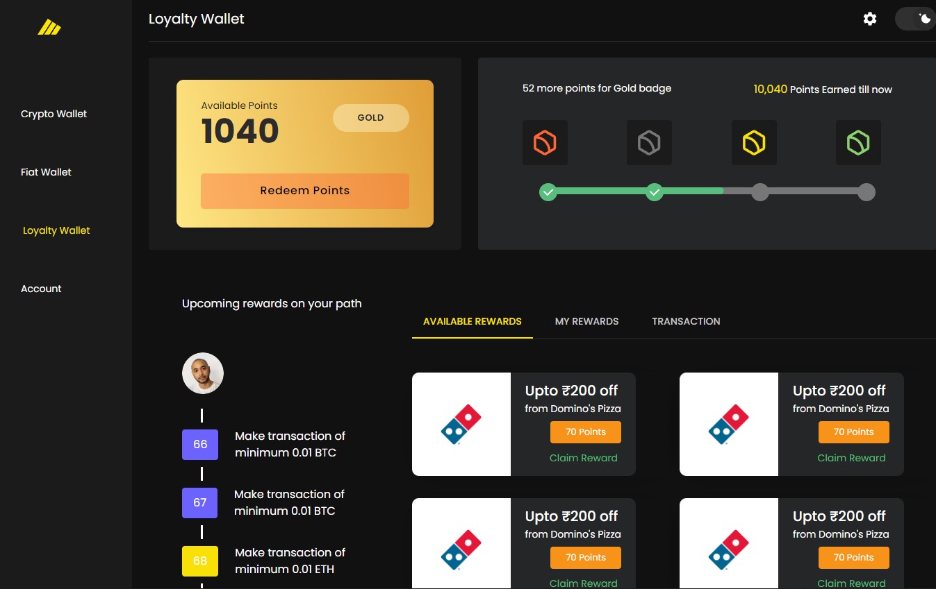 Для различных вариантов использования (криптовалютный кошелек, кошелек для баллов лояльности и фиатный кошелек)