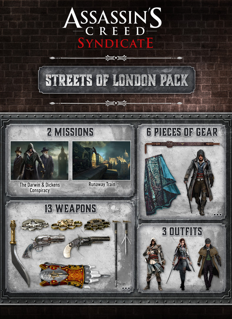 Для более полного погружения в мир Assassin´s Creed Синдикат: - Дополнительный час игры – задания ""Заговор Дарвина и Диккенса"" и ""Неудержимый"" - 13 видов оружия, 6 предметов снаряжения и 3 костюма