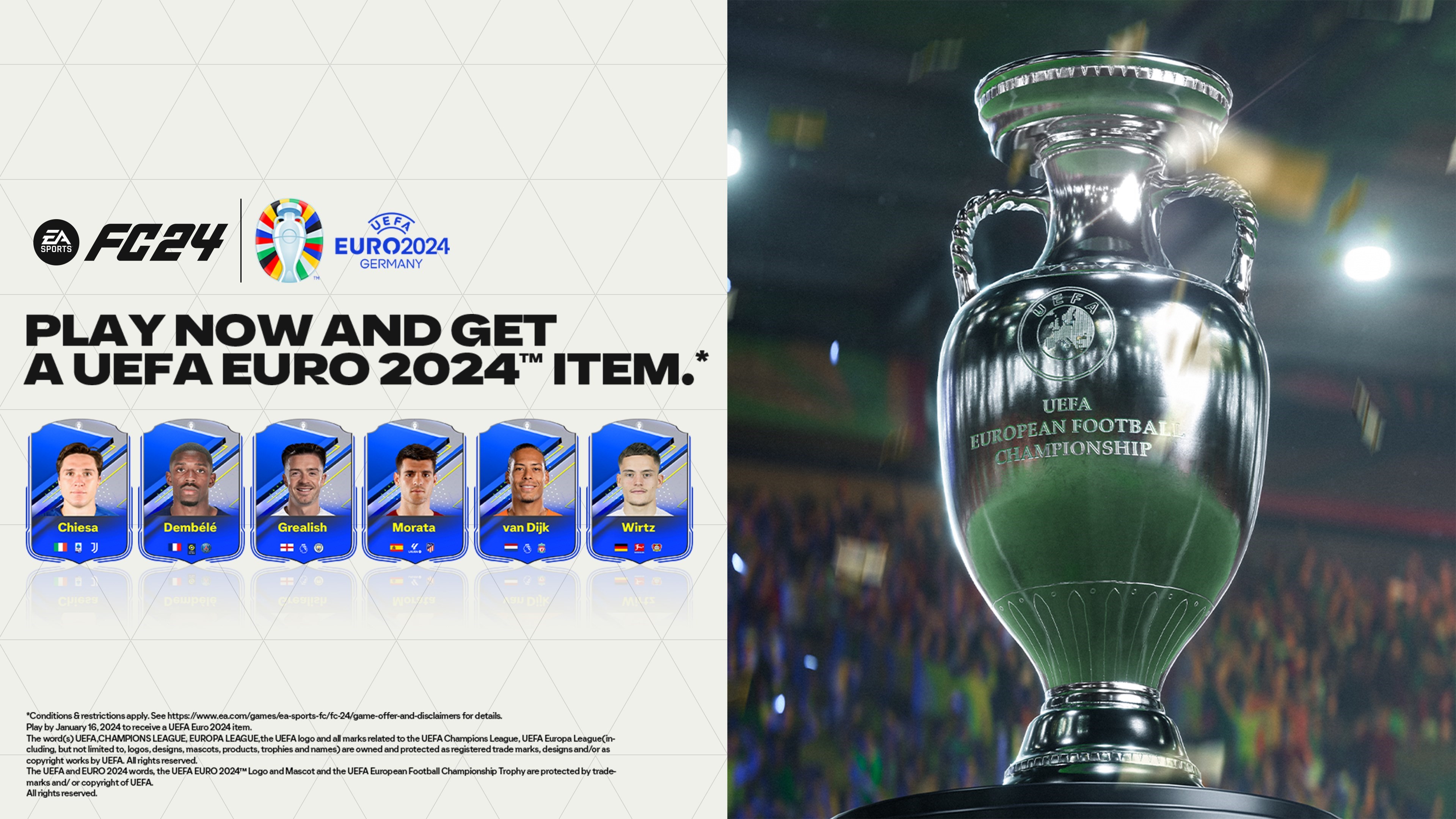 Играйте сейчас, чтобы получить игрока FIFA EURO 2024™ Ultimate Team™ с 18 декабря, а настоящим турнирным опытом вы сможете насладиться следующим летом без каких-либо дополнительных затрат.††††