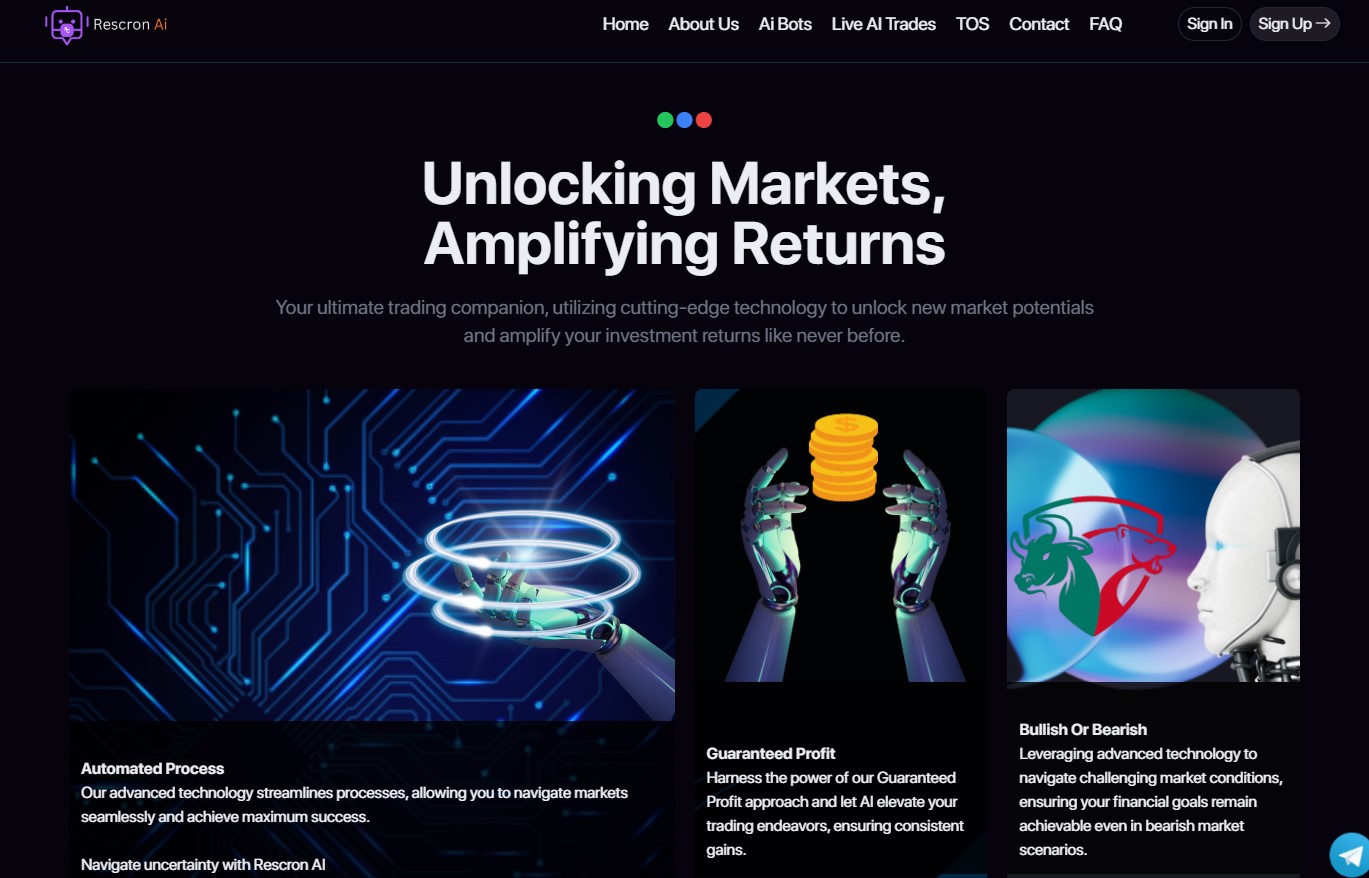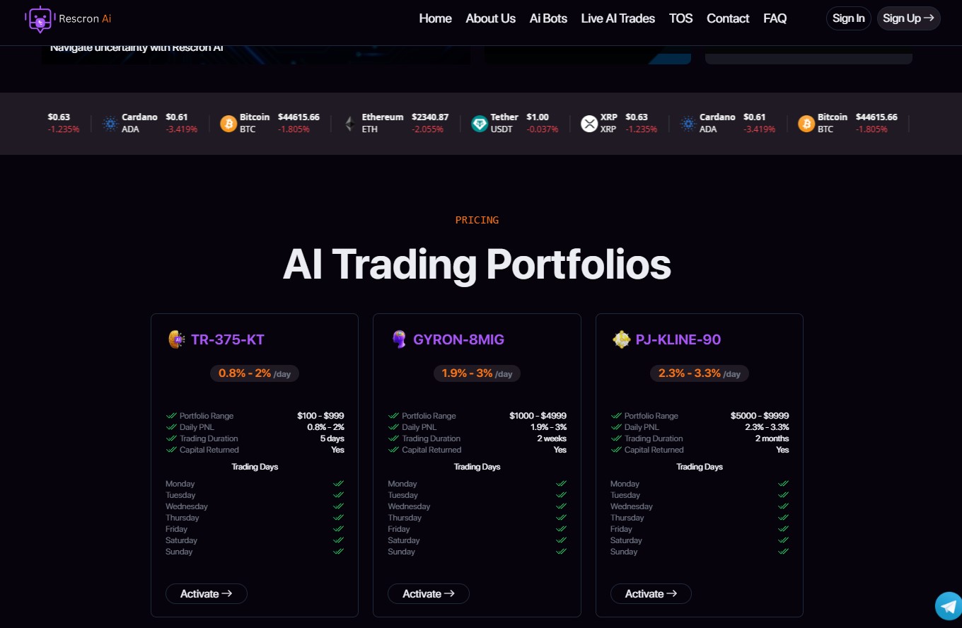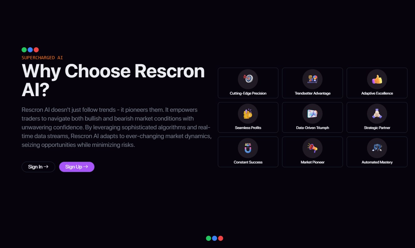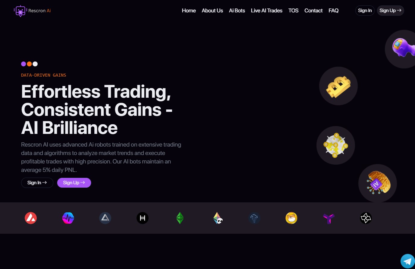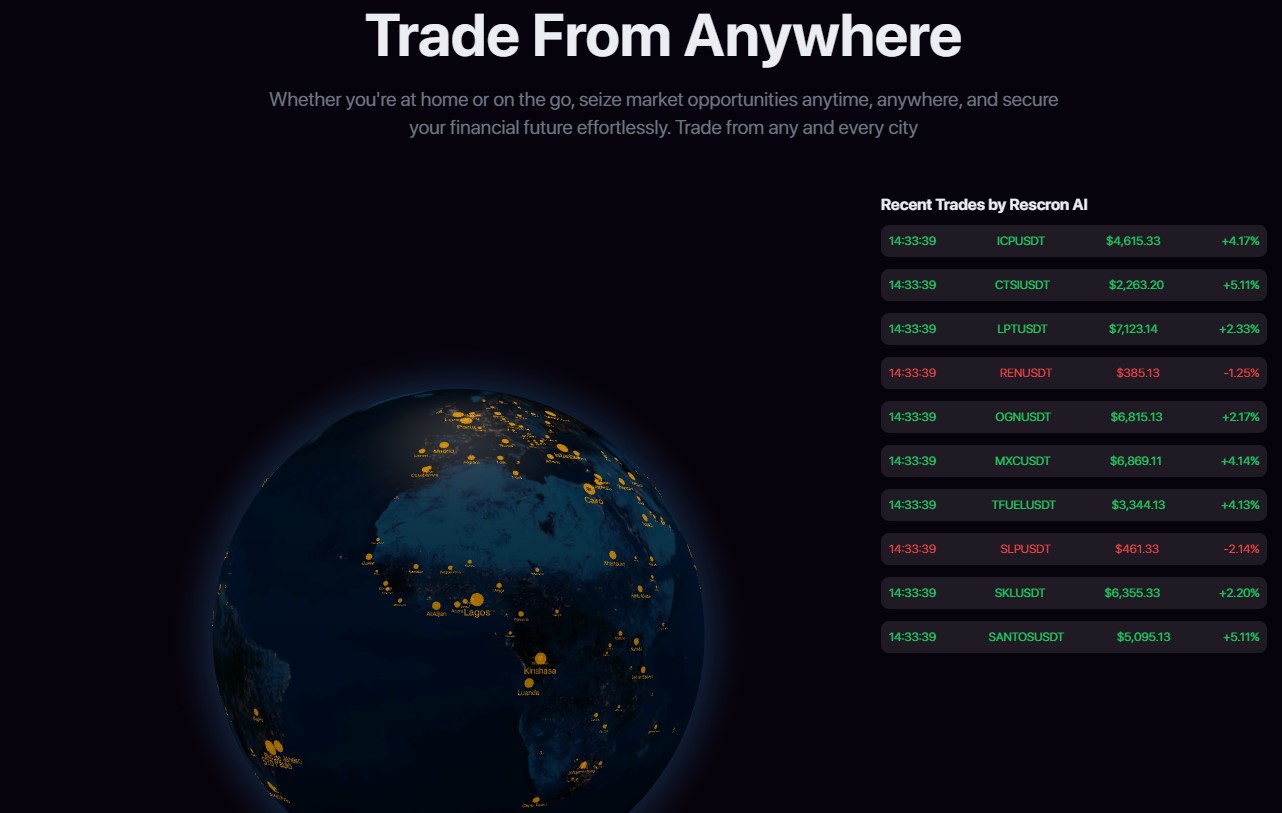 Rescron AI не просто следует тенденциям — он является их пионером. Это дает трейдерам возможность с непоколебимой уверенностью ориентироваться как в бычьих, так и в медвежьих рыночных условиях. Используя сложные алгоритмы и потоки данных в реальном времени, Rescron AI адаптируется к постоянно меняющейся динамике рынка, используя возможности и минимизируя риски.