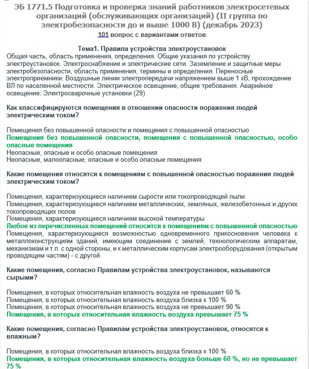 Вопросы с ответами к курсам ОКС-Олимп ЭБ 1771.5 (декабрь 2023) Подготовка и проверка знаний работников электросетевых организаций (обслуживающих организаций) (II группа по электробезопасности до и выше 1000 В)
