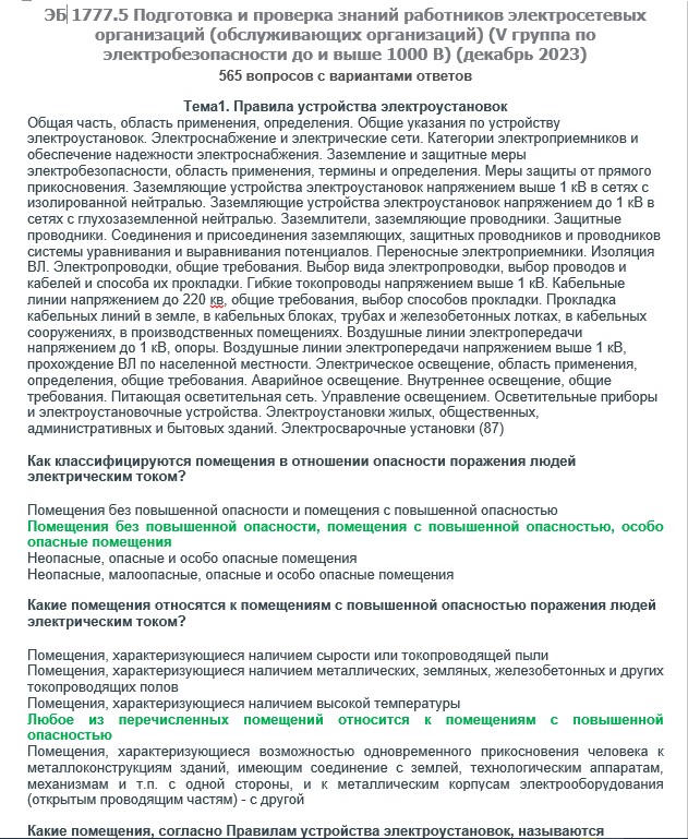 Вопросы с ответами к курсам ОКС-Олимп ЭБ 1777.5 (декабрь 2023) Подготовка и проверка знаний работников электросетевых организаций (обслуживающих организаций) (V группа по электробезопасности до и выше 1000 В)