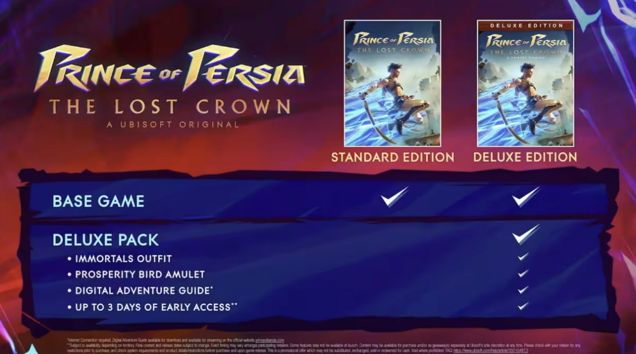 🔥Prince of Persia: The Lost Crown Deluxe Edition включает в себя основную игру и Deluxe Pack, который открывает вам такой контент как Immortal outdit для Sargon и Prosperity Bird Amulet. Получите доступ к Цифровому Руководству по Приключениям, чтобы разгадать тайны горы Каф.