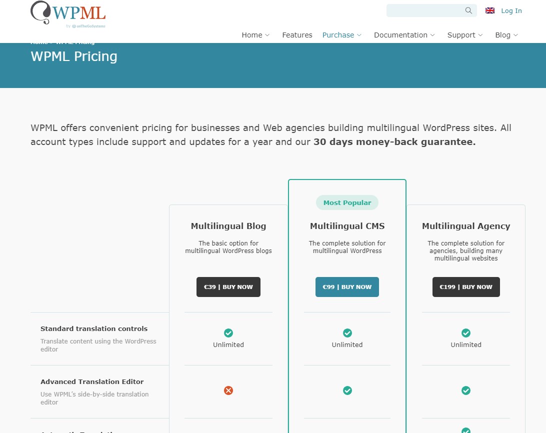 WPML позволяет авторам писать контент на разных языках и переводить контент. Он также включает в себя расширенные функции управления переводами и интерфейс для профессионального перевода контента.