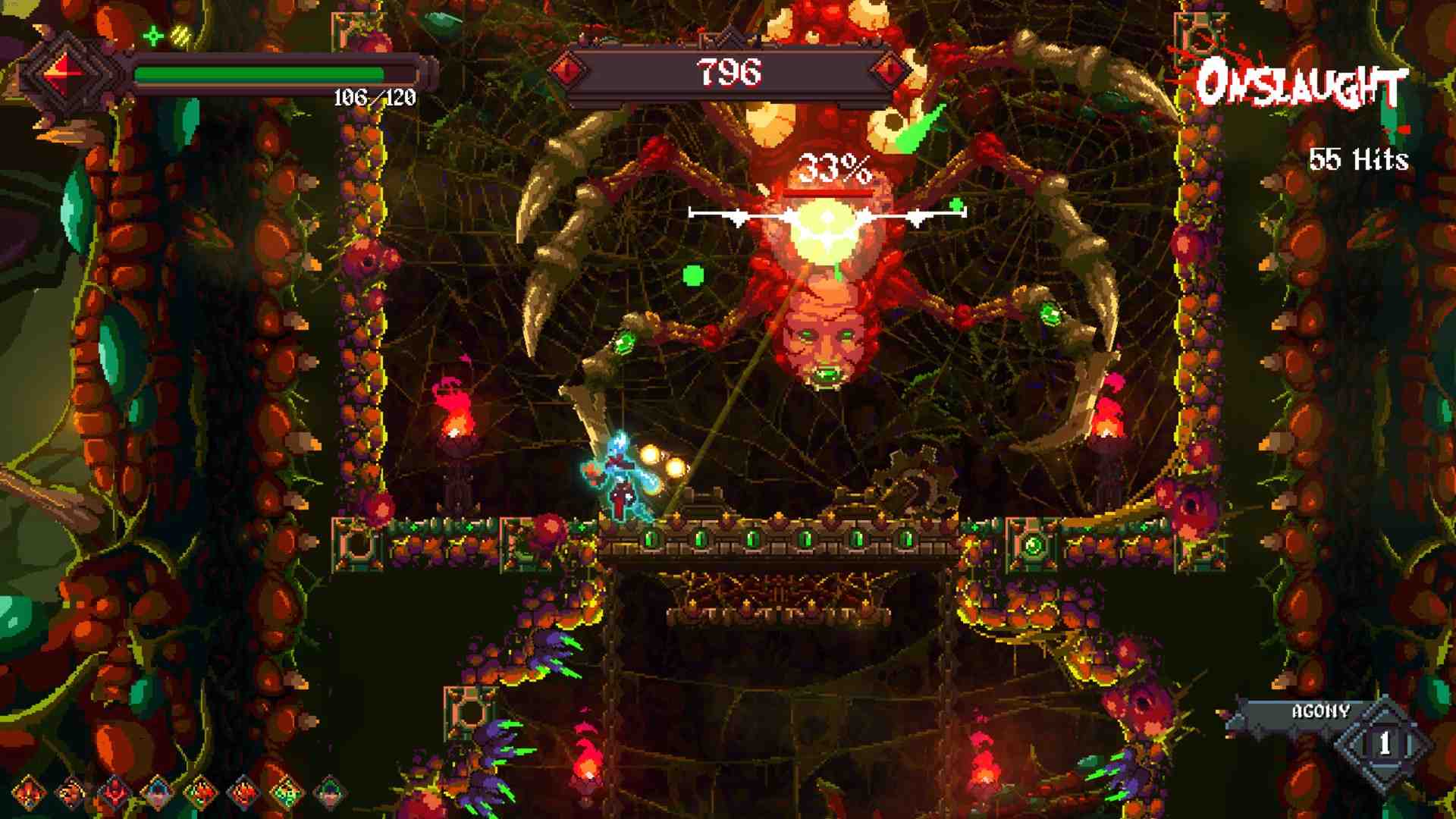 Риффы хэви-метала и пиксельное безумие будут сопровождать вас, пока вы пробиваетесь из глубин огненного ада, столкнувшись с кишащим жуками Логовом Вельзевула и другими адскими ямами, вокруг которых скрываются разные существа, боссы и живые ловушки. Сочетание комбо, прыжковые маневры и развитие талантов станут вашим ключом, который поможет вам выбраться из ада в этом адреналиновом вертикальном платформере.