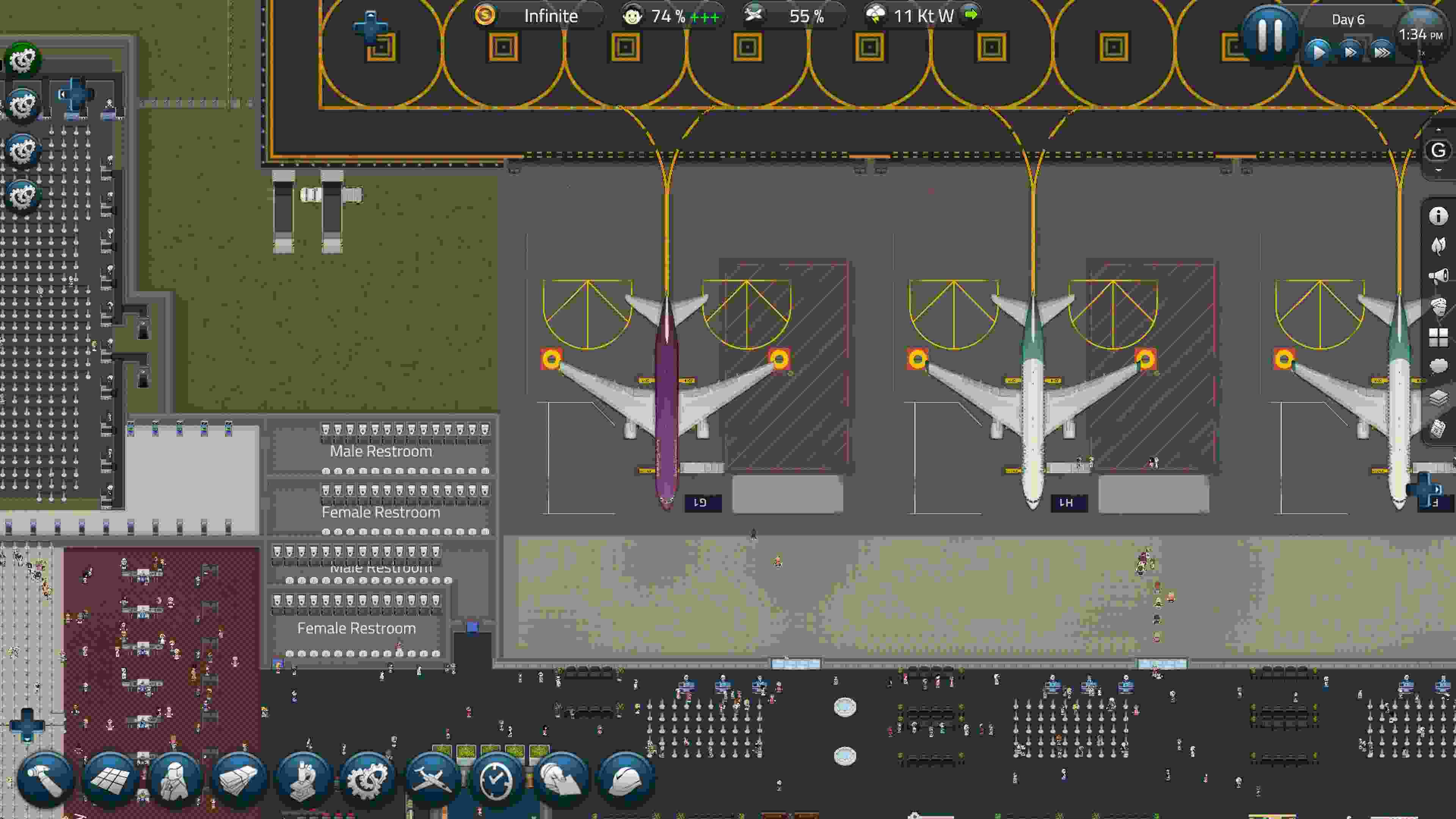 Это кажется простым, например, размещение туалетов или торговых площадей, но это больше, чем кажется на первый взгляд! Pax может отвлечься, когда сидячие места или интересные услуги требуют долгой прогулки или находятся далеко от ворот! Тщательно продумайте детали, чтобы действительно максимизировать свою эффективность и пожинать прибыль.