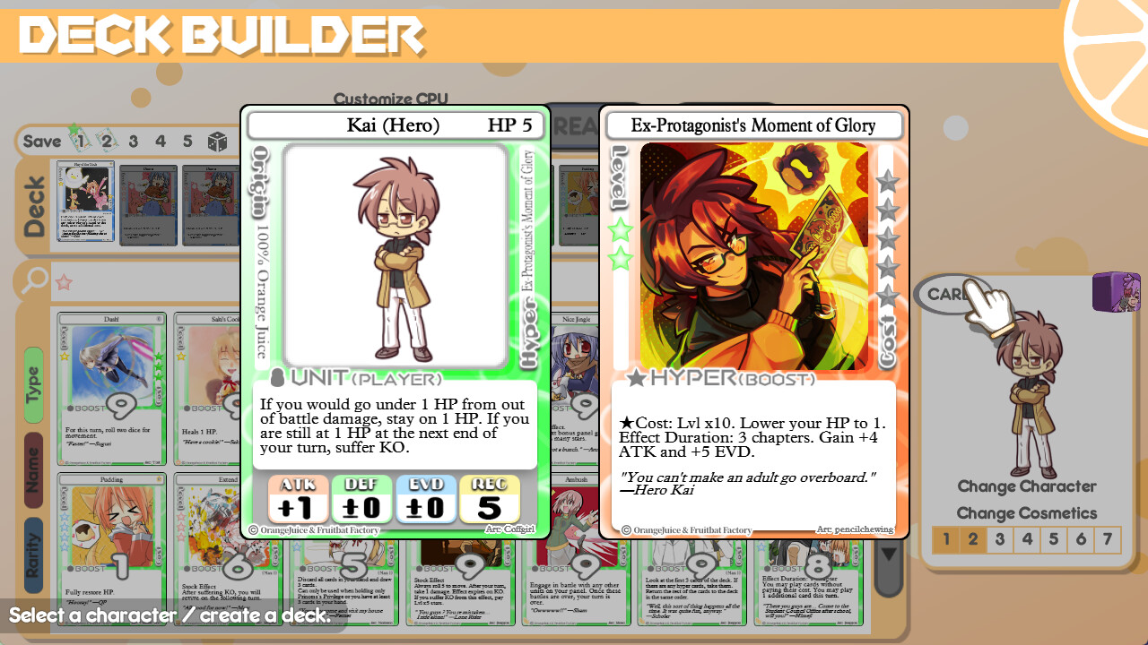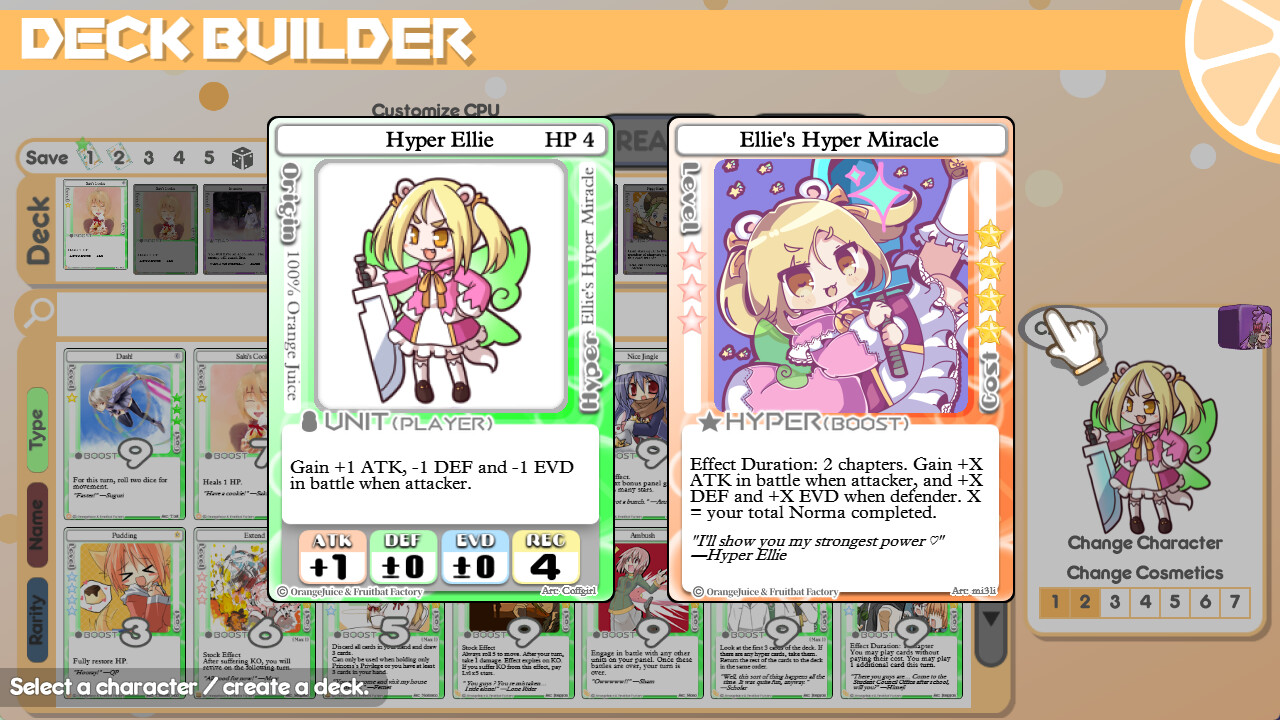 This Extra Character Pack for 100% Orange Juice adds 2 new playable characters original to 100% Orange Juice: Kai (Hero) in the glorious return of the game´s protagonist, and his daughter Hyper Ellie, awakened to her true potential. The characters come with new announcer voices!