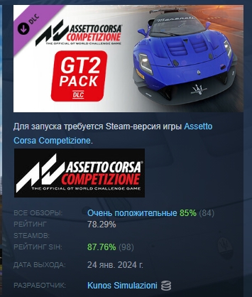 Внимание! Для запуска требуется Steam-версия игры Assetto Corsa Competizione.