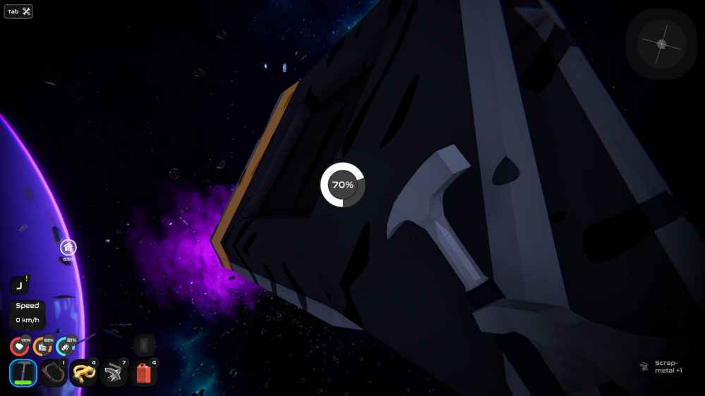Ресурсы из останков тех же кораблей станут вашим спасением. Разберите обломки кораблей, возможно, вы найдете что-то полезное. Но помните, что вам нужны кислород и пища, постарайтесь найти способ их производства.