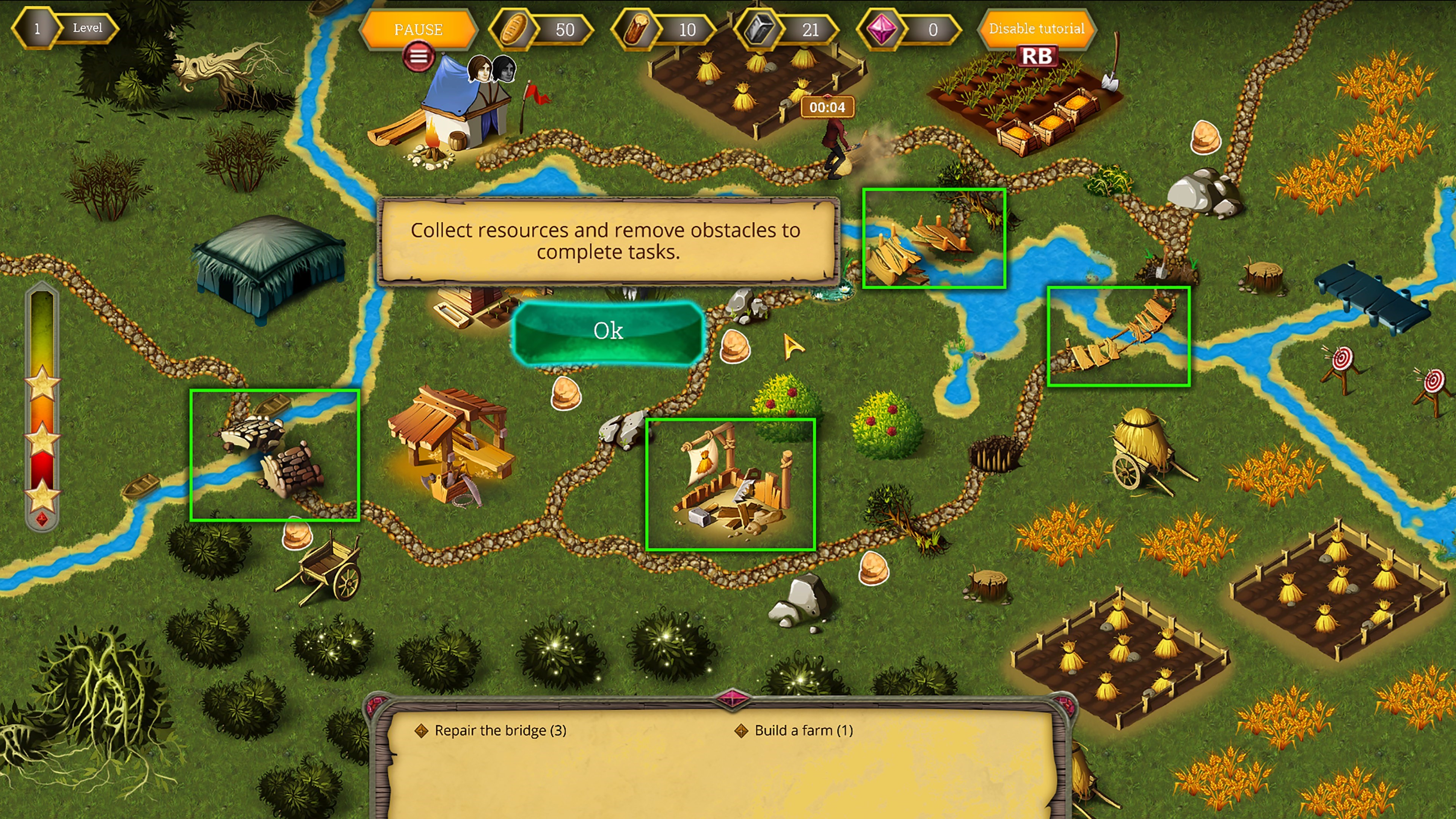 Тайм-менеджмент - это жанр, в котором вы должны собирать урожай, добывать камень, обрабатывать древесину и разумно распределять ресурсы в режиме реального времени, чтобы выполнить задачи уровня за отведенное время. По мере прохождения игры вы можете улучшать доступные ресурсы, используя заработанные награды.