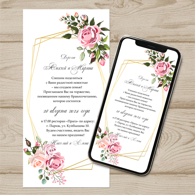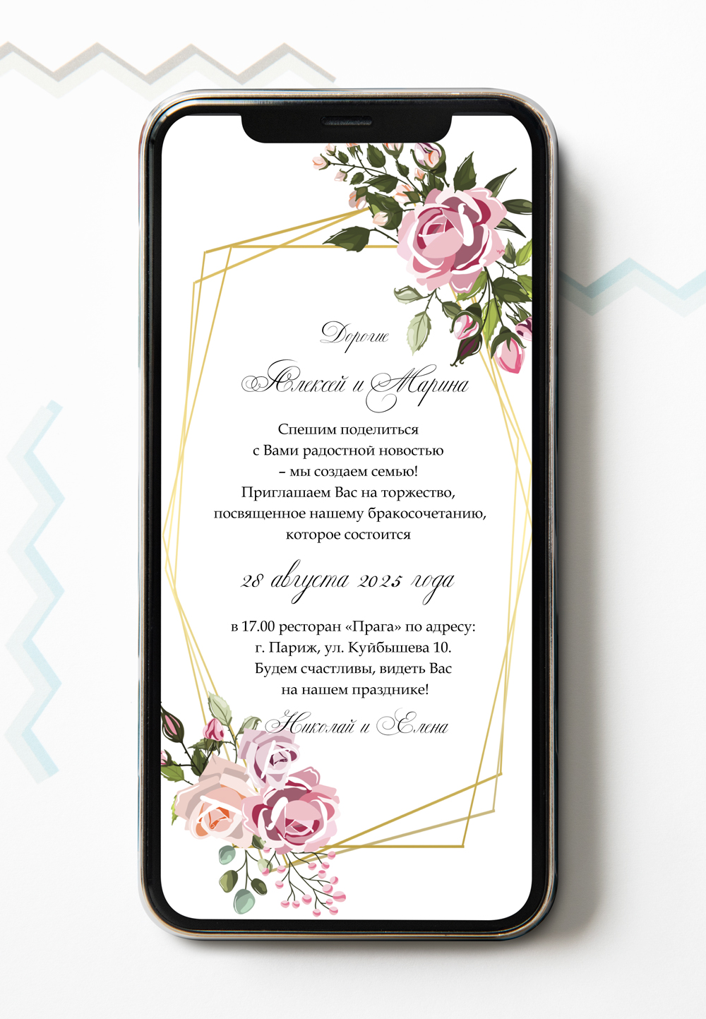 Цифровое свадебное приглашение, Электронное свадебное приглашение.Приглашение для смартфонов, (адаптивное под большинство экранов)
