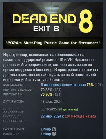 https://store.steampowered.com/app/2780270/Dead_end_Exit_8/