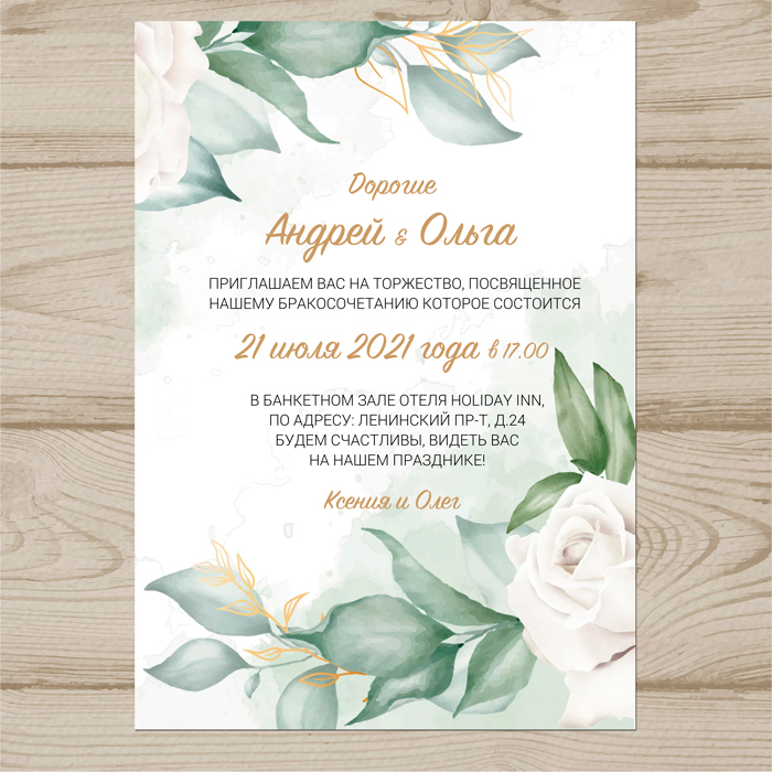 Макет приглашения был сделан в размере А4 (210х297 мм),Вы легко можете изменить размер на свой.