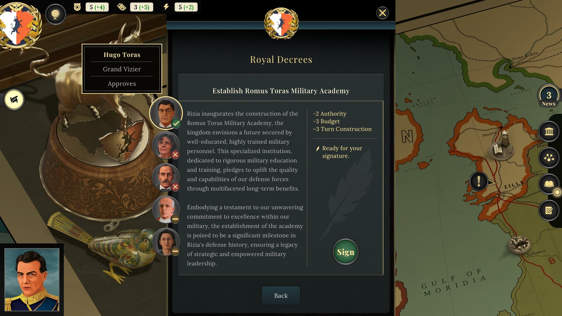 Embark on a royal journey in Suzerain´s first DLC. Embrace the crown as King Romus Toras, and lead the Golden Kingdom to a new era. Reclaim lost territories through diplomacy or force. Engage with royal houses and oversee the resources of Rizia. How will you reign?