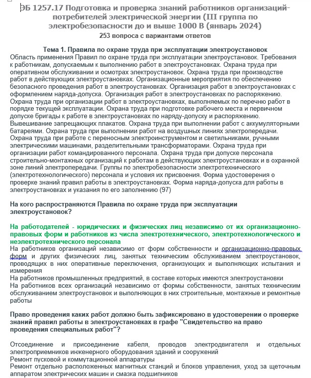 Вопросы с ответами к курсам ОКС-Олимп ЭБ 1257.17 (январь 2024) Подготовка и проверка знаний работников организаций-потребителей электрической энергии (III группа до и выше 1000В)