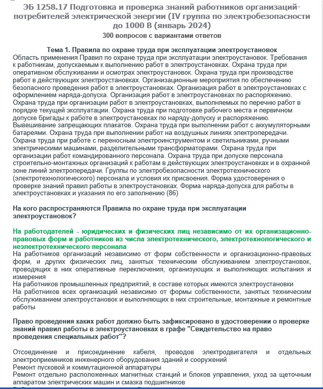 Вопросы с ответами к курсам ОКС-Олимп ЭБ 1258.17 (январь 2024) Подготовка и проверка знаний работников организаций-потребителей электрической энергии (IV группа до 1000В)