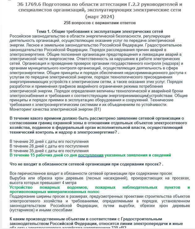 Вопросы с ответами к курсам ОКС-Олимп Г.2.2 ЭБ 1769.6 (март 2024) Подготовка по области аттестации Г.2.2 руководителей и специалистов организаций, эксплуатирующих электрические сети
